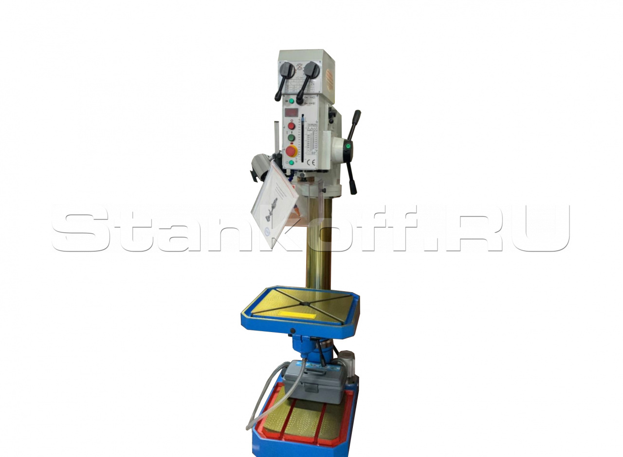 Станок с увеличенными, мощностью и параметрами сверления, так же станок в стандартной комплектации оснащен системой подачи СОЖ и автоподачей, предназначен для выполнения широкого спектра задач, среди которых зенкерование, сверление, растачивание и др. На нем легко обрабатываются заготовки из различных материалов. Используется преимущественно в поштучном или мелкосерийном производстве. Особенности: Поворот сверлильной головы Подача пиноли производится автоматически; Откидной стол; Узел контроля глубины сверления; Регулировка глубины сверления осуществляется специальным приспособлением.
