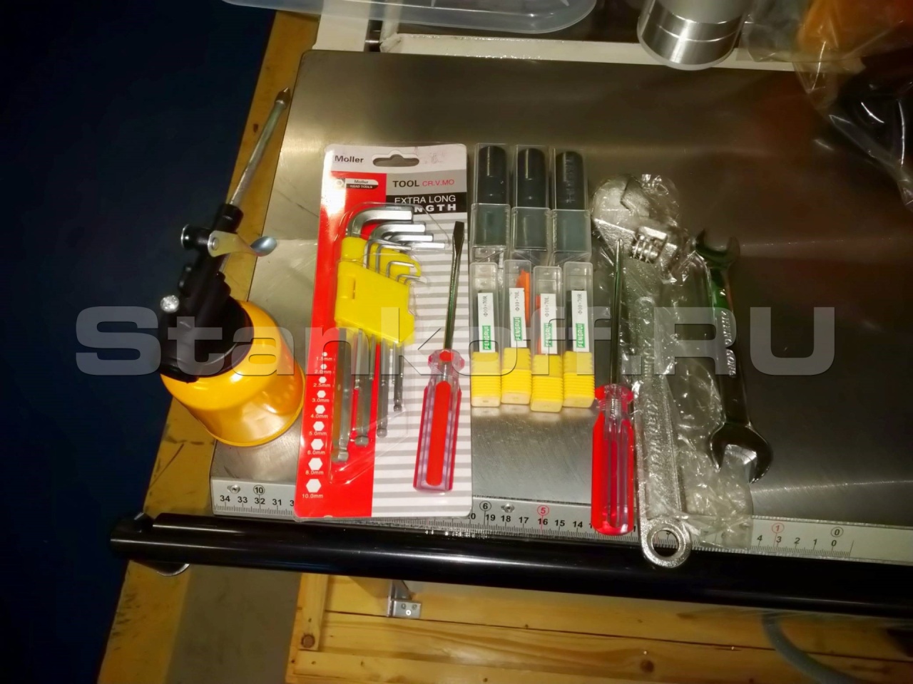 - Регулируемые чугунные боковые упоры оснащены миллиметровой шкалой с линзами;