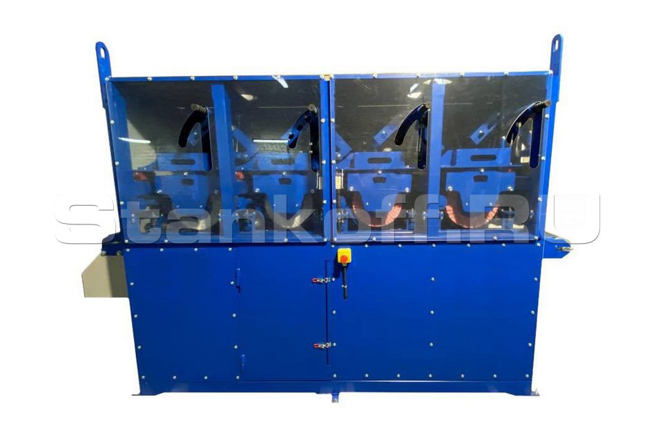 Станок полировальный предназначен для поточного полирования плоских деталей из листа, профильных труб (квадратного и прямоугольного сечения), иных деталей с плоскопараллельными поверхностями. Материалом заготовки может быть алюминий и его сплавы, цветные металлы на основе меди, чёрные стали, нержавеющие стали и прочие материалы, подвергающиеся полированию нетканым материалом, сизалевыми и хлопчатобумажными тканями с полировальной пастой.