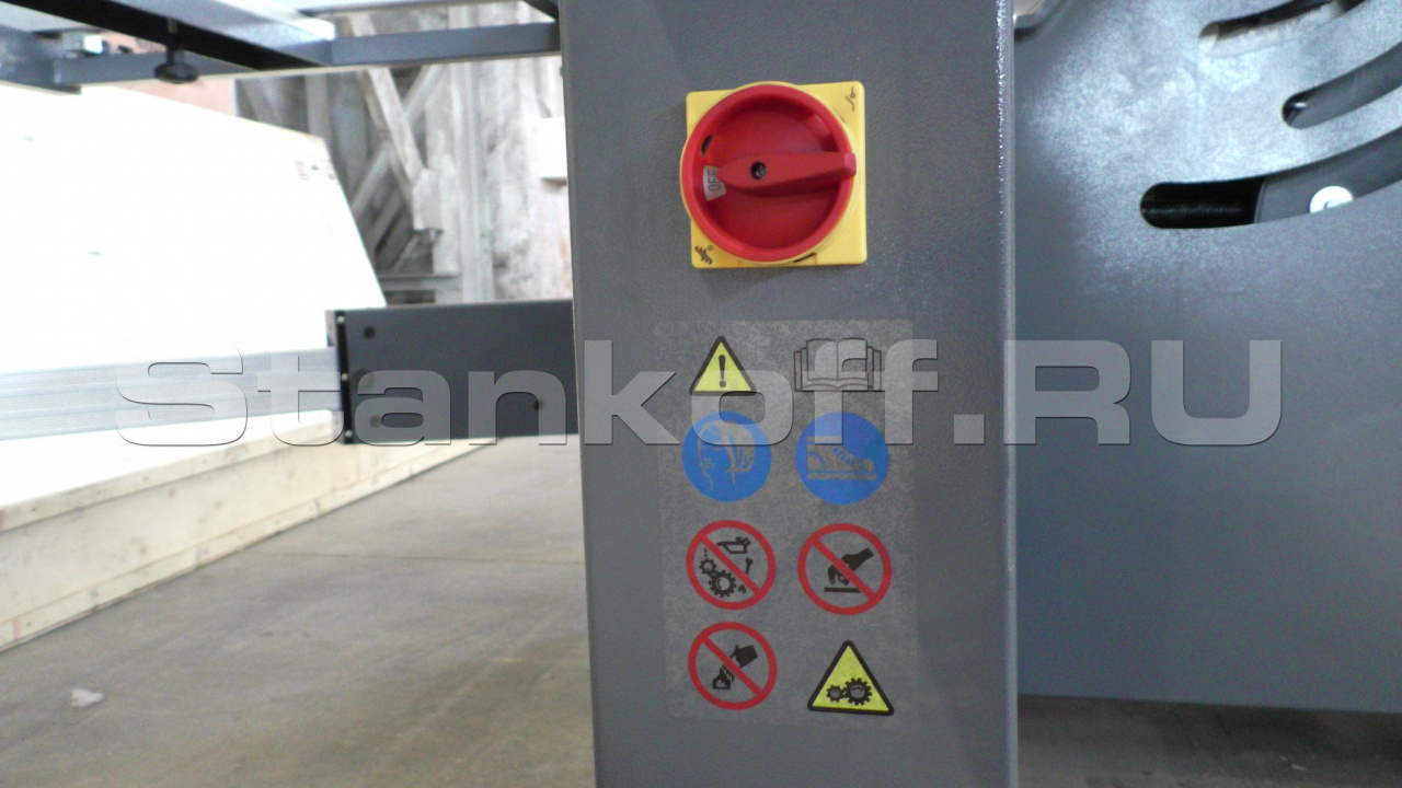 Система управления обеспечивает максимальное удобство работы на станке. На панели расположены: электронный индикатор угла наклона пильного узла, кнопка экстренного отключения станка, кнопки запуска и остановки основной и подрезной пилы.