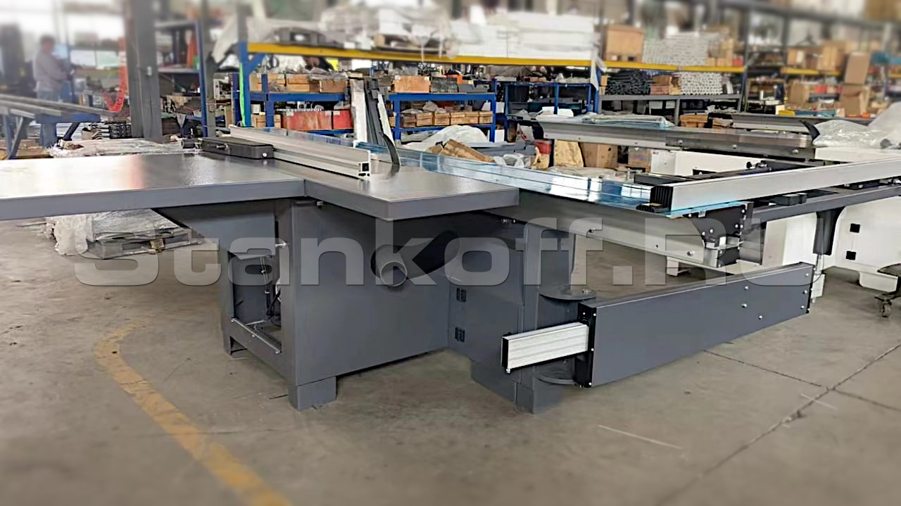 Поперечная линейка жестко фиксируется к поддерживающему столу в двух точках под углом 90 градусов к линии пропила. Настраивается единожды и не требует дополнительных регулировок. Полностью исключает смещения прямого угла.