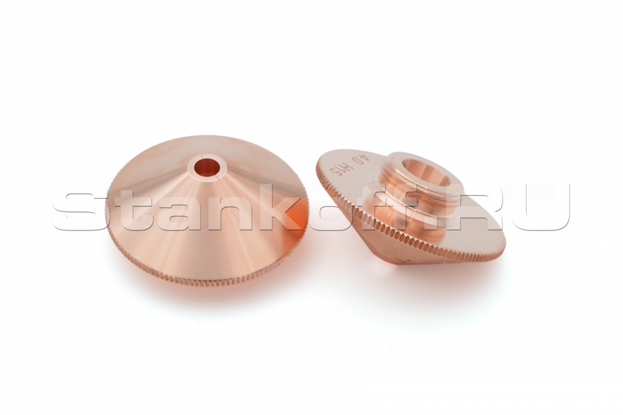 Используется в качестве электрода для корректной работы датчика слежения за поверхностью, а также для подачи лазерного излучения и режущего газа (опционально) в зону обработки. Срок службы зависит от условий эксплуатации. Все сопла Raytools характеризуются прочностью и надежностью. Сопловая часть лазерной головки состоит из керамического держателя и непосредственно сопла. Эта часть обеспечивает соосность лазерного излучения и струи газа. Во всех соплах используется функция центровки, которая позволяет быстро изменять и выравнивать положение сопла. Одинарные сопла используются для резки тонкого материала, нержавеющей стали и алюминия. Для полного охвата диапазона толщины сопла имеют диаметр в диапазоне от 0,8 до 10 мм.