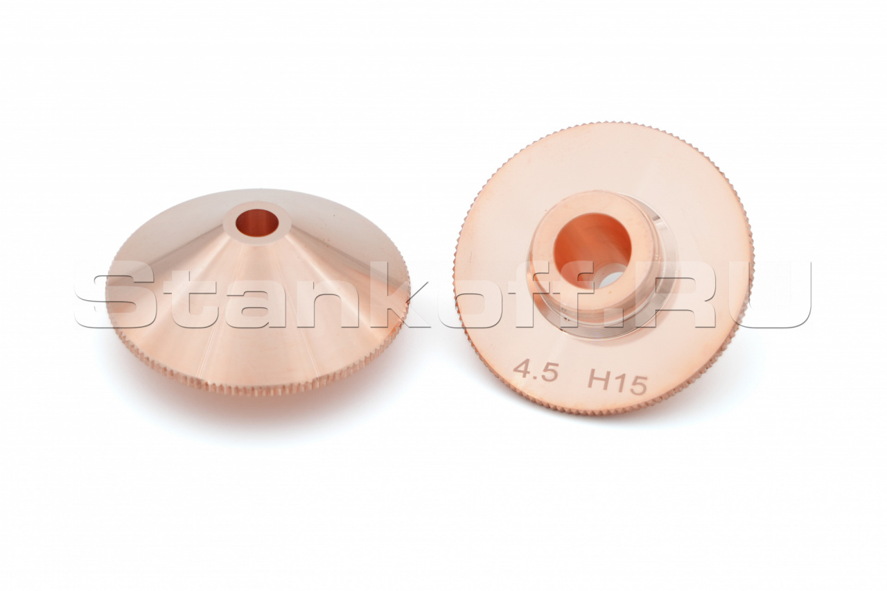 Используется в качестве электрода для корректной работы датчика слежения за поверхностью, а также для подачи лазерного излучения и режущего газа (опционально) в зону обработки. Срок службы зависит от условий эксплуатации. Все сопла Raytools характеризуются прочностью и надежностью. Сопловая часть лазерной головки состоит из керамического держателя и непосредственно сопла. Эта часть обеспечивает соосность лазерного излучения и струи газа. Во всех соплах используется функция центровки, которая позволяет быстро изменять и выравнивать положение сопла. Одинарные сопла используются для резки тонкого материала, нержавеющей стали и алюминия. Для полного охвата диапазона толщины сопла имеют диаметр в диапазоне от 0,8 до 10 мм.