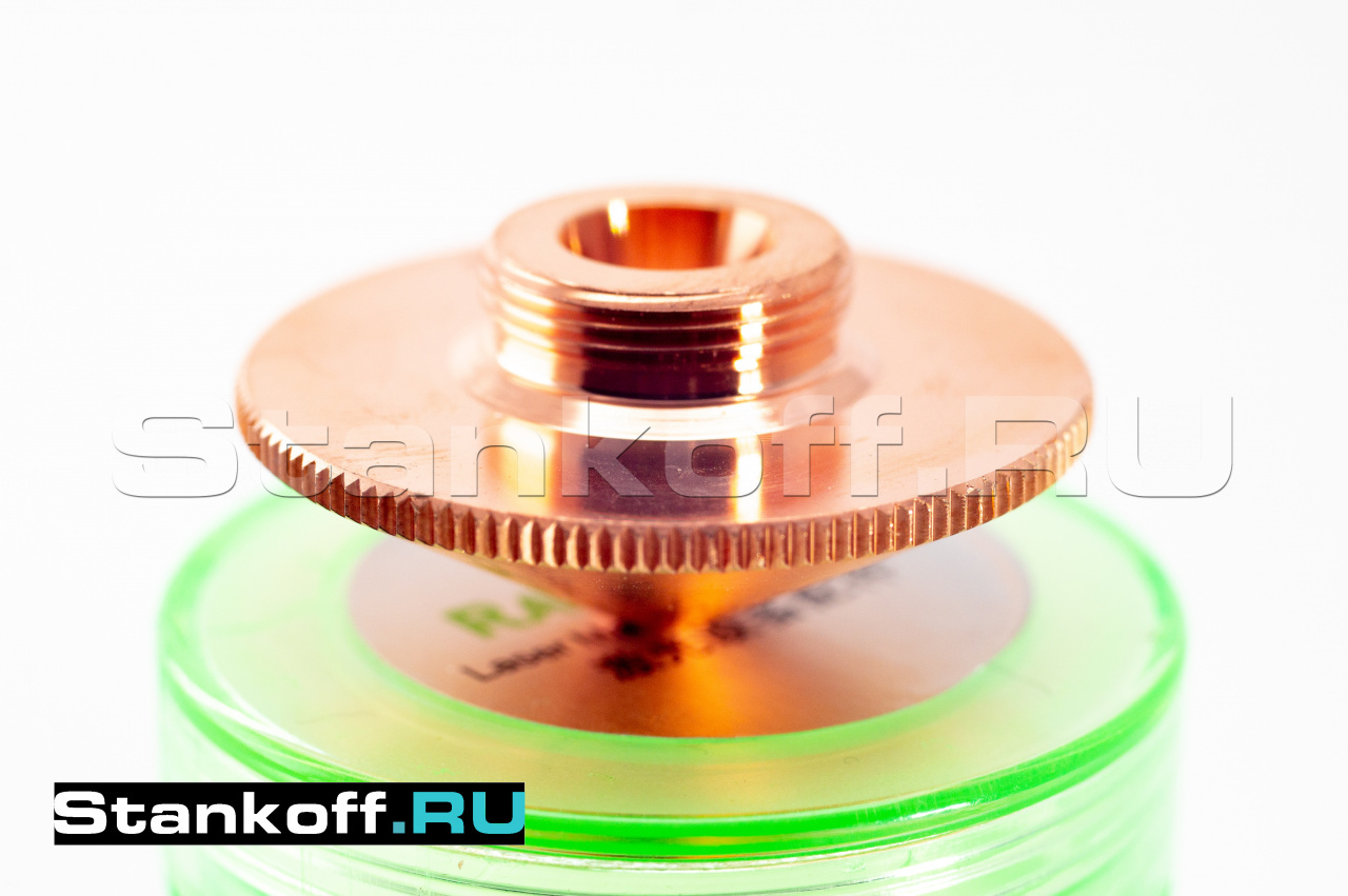 Используется в качестве электрода для корректной работы датчика слежения за поверхностью, а также для подачи лазерного излучения и режущего газа (опционально) в зону обработки. Срок службы зависит от условий эксплуатации. Все сопла Raytools характеризуются прочностью и надежностью. Сопловая часть лазерной головки состоит из керамического держателя и непосредственно сопла. Эта часть обеспечивает соосность лазерного излучения и струи газа. Во всех соплах используется функция центровки, которая позволяет быстро изменять и выравнивать положение сопла. Одинарные сопла используются для резки тонкого материала, нержавеющей стали и алюминия. Для полного охвата диапазона толщины сопла имеют диаметр в диапазоне от 0,8 мм до 10 мм.