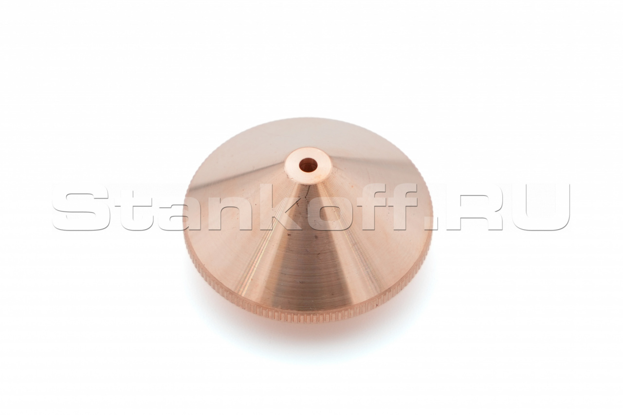 Используется в качестве электрода для корректной работы датчика слежения за поверхностью, а также для подачи лазерного излучения и режущего газа (опционально) в зону обработки. Срок службы зависит от условий эксплуатации. Все сопла Raytools характеризуются прочностью и надежностью. Сопловая часть лазерной головки состоит из керамического держателя и непосредственно сопла. Эта часть обеспечивает соосность лазерного излучения и струи газа. Во всех соплах используется функция центровки, которая позволяет быстро изменять и выравнивать положение сопла. Одинарные сопла используются для резки тонкого материала, нержавеющей стали и алюминия. Для полного охвата диапазона толщины сопла имеют диаметр в диапазоне от 0,8 мм до 10 мм.