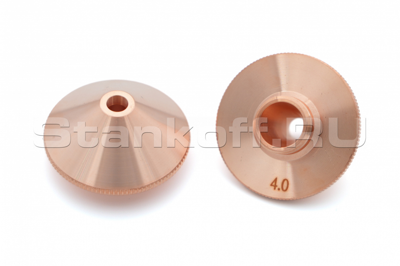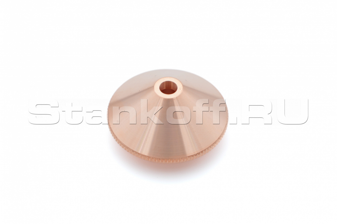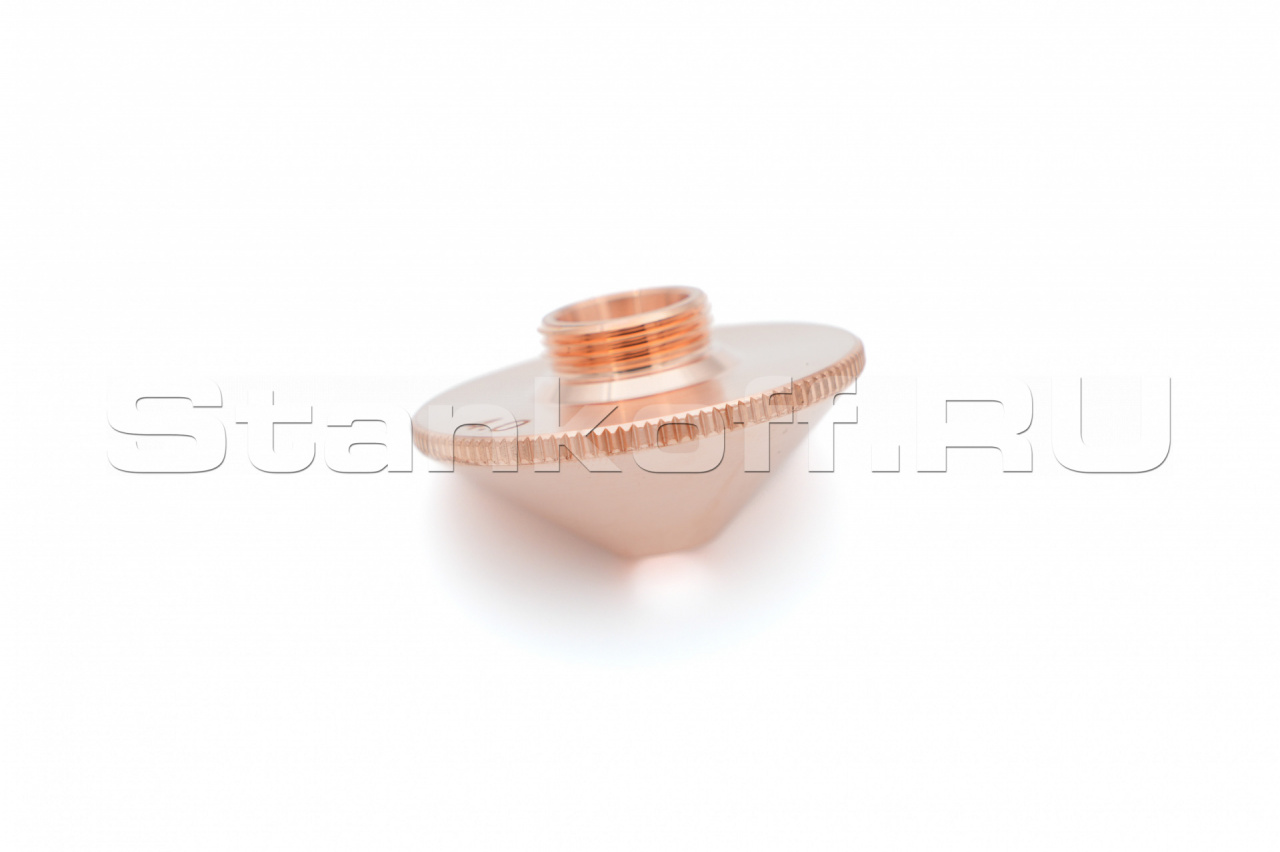Используется в качестве электрода для корректной работы датчика слежения за поверхностью, а также для подачи лазерного излучения и режущего газа (опционально) в зону обработки. Срок службы зависит от условий эксплуатации. Все сопла Raytools характеризуются прочностью и надежностью. Сопловая часть лазерной головки состоит из керамического держателя и непосредственно сопла. Эта часть обеспечивает соосность лазерного излучения и струи газа. Во всех соплах используется функция центровки, которая позволяет быстро изменять и выравнивать положение сопла. Одинарные сопла используются для резки тонкого материала, нержавеющей стали и алюминия. Для полного охвата диапазона толщины сопла имеют диаметр в диапазоне от 0,8 мм до 10 мм.
