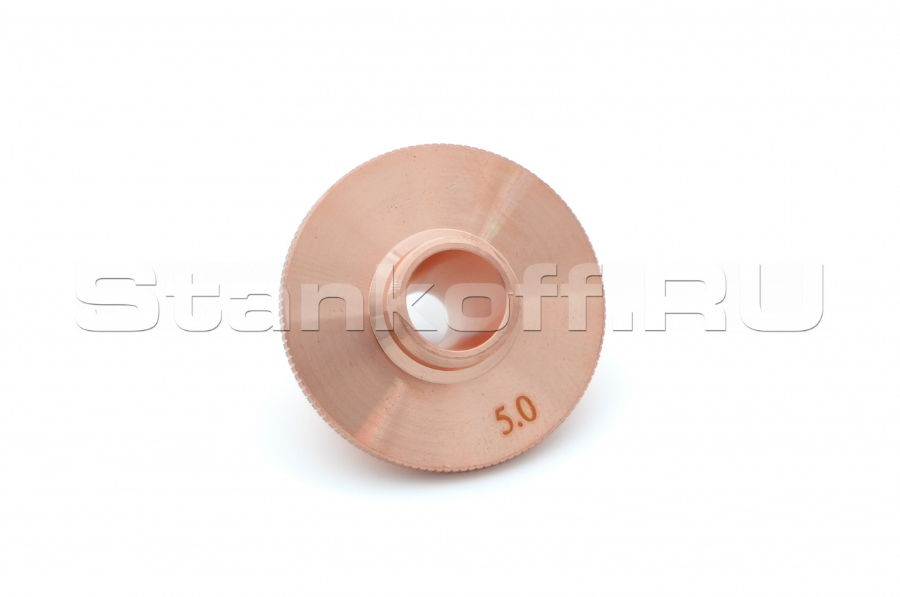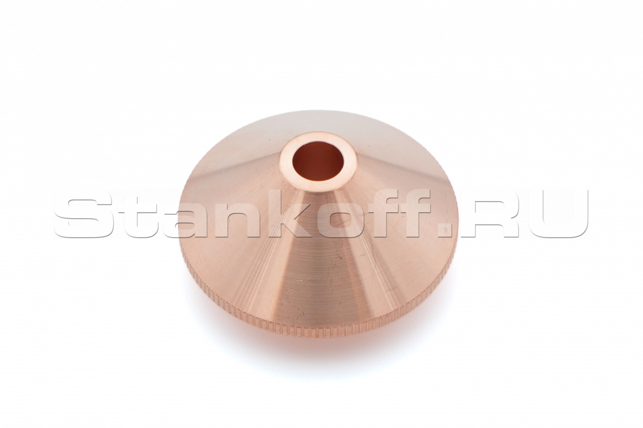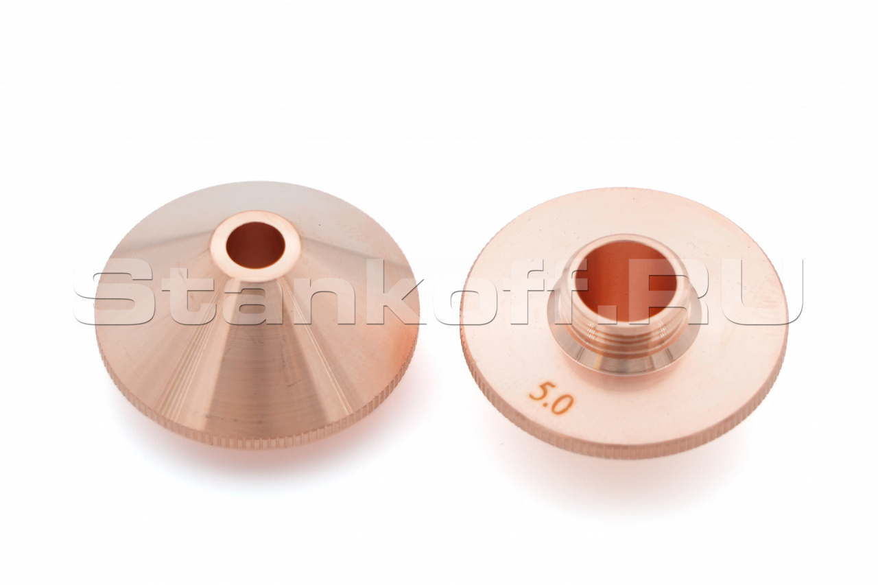 Используется в качестве электрода для корректной работы датчика слежения за поверхностью, а также для подачи лазерного излучения и режущего газа (опционально) в зону обработки. Срок службы зависит от условий эксплуатации. Все сопла Raytools характеризуются прочностью и надежностью. Сопловая часть лазерной головки состоит из керамического держателя и непосредственно сопла. Эта часть обеспечивает соосность лазерного излучения и струи газа. Во всех соплах используется функция центровки, которая позволяет быстро изменять и выравнивать положение сопла. Одинарные сопла используются для резки тонкого материала, нержавеющей стали и алюминия. Для полного охвата диапазона толщины сопла имеют диаметр в диапазоне от 0,8 мм до 10 мм.