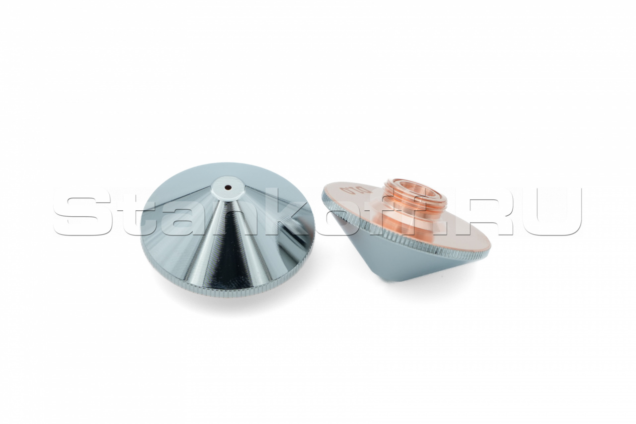 Используется в качестве электрода для корректной работы датчика слежения за поверхностью, а также для подачи лазерного излучения и режущего газа (опционально) в зону обработки. Срок службы зависит от условий эксплуатации. Все сопла Raytools характеризуются прочностью и надежностью. Сопловая часть лазерной головки состоит из керамического держателя и непосредственно сопла. Эта часть обеспечивает соосность лазерного излучения и струи газа. Электролитическое хромирование максимизирует срок эксплуатации, сокращает адгезию при разбрызгивании и обеспечивает стабильное определение высоты. Во всех соплах используется функция центровки, которая позволяет быстро изменять и выравнивать положение сопла. Двойные сопла улучшают качество поверхности при кислородной резке низкоуглеродистой стали. Для полного охвата диапазона толщины сопла имеют диаметр в диапазоне от 0,8 мм до 10 мм.