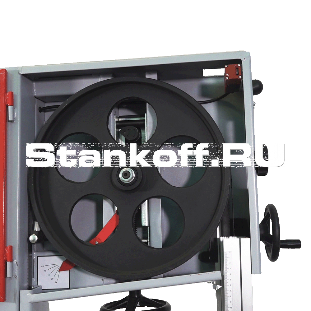 Прочный и жесткий стальной корпус. Высота продольной распиловки 350 мм. Максимальная ширина заготовки (слева от пилы) 375 мм. Направляющие подшипники ленты для обеспечения дополнительной точности и длительного срока службы. Мощный асинхронный двигатель выходной мощностью 2,2 кВт. Точно отшлифованный чугунный рабочий стол. Динамически сбалансированные литые маховики. Опорный ролик для стола с уклоном 0°- 45°. Телескопическая защита пилы, обеспечивающая полную безопасность. Параллельный упор с алюминиевым профилем.