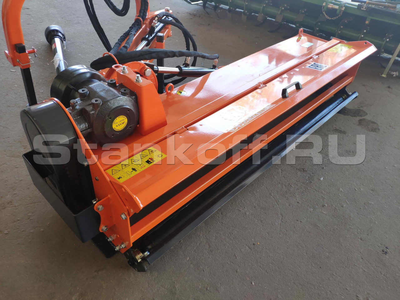 - 3-х точечная навеска с системой гидравлического смещения – дает возможность мульчирователю смещаться относительно направления движения, а также максимально приблизиться в приствольную зону для ее обработки;