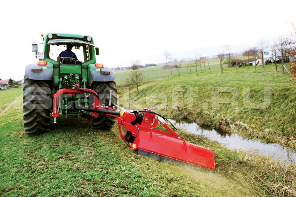 - Плавающая подстройка с молотковым аппаратом под неровный рельеф – обеспечивает качественное срезание и измельчение поросли на склонах и подъемах;