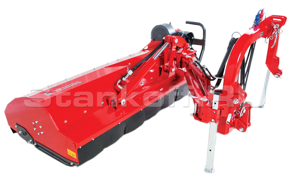 - Запатентованный двухшарнирный механизм – позволяет смещать и поднимать косилку при столкновении с препятствиями, благодаря чему обеспечивается безопасное преодоление препятствий;