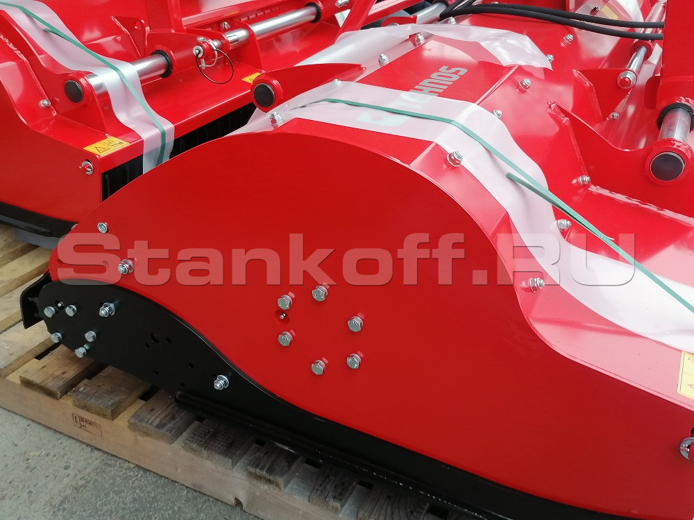- Механически открываемая задняя крышка – позволяет увеличить производительность мульчера в единицу времени за счет быстрого удаления во время работы скапливающейся биомассы;