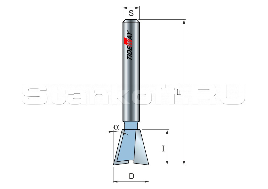 Фреза ласточкин хвост 14гр. Z=2 D=12,7x13 S=8 TIDEWAY LC03030808
