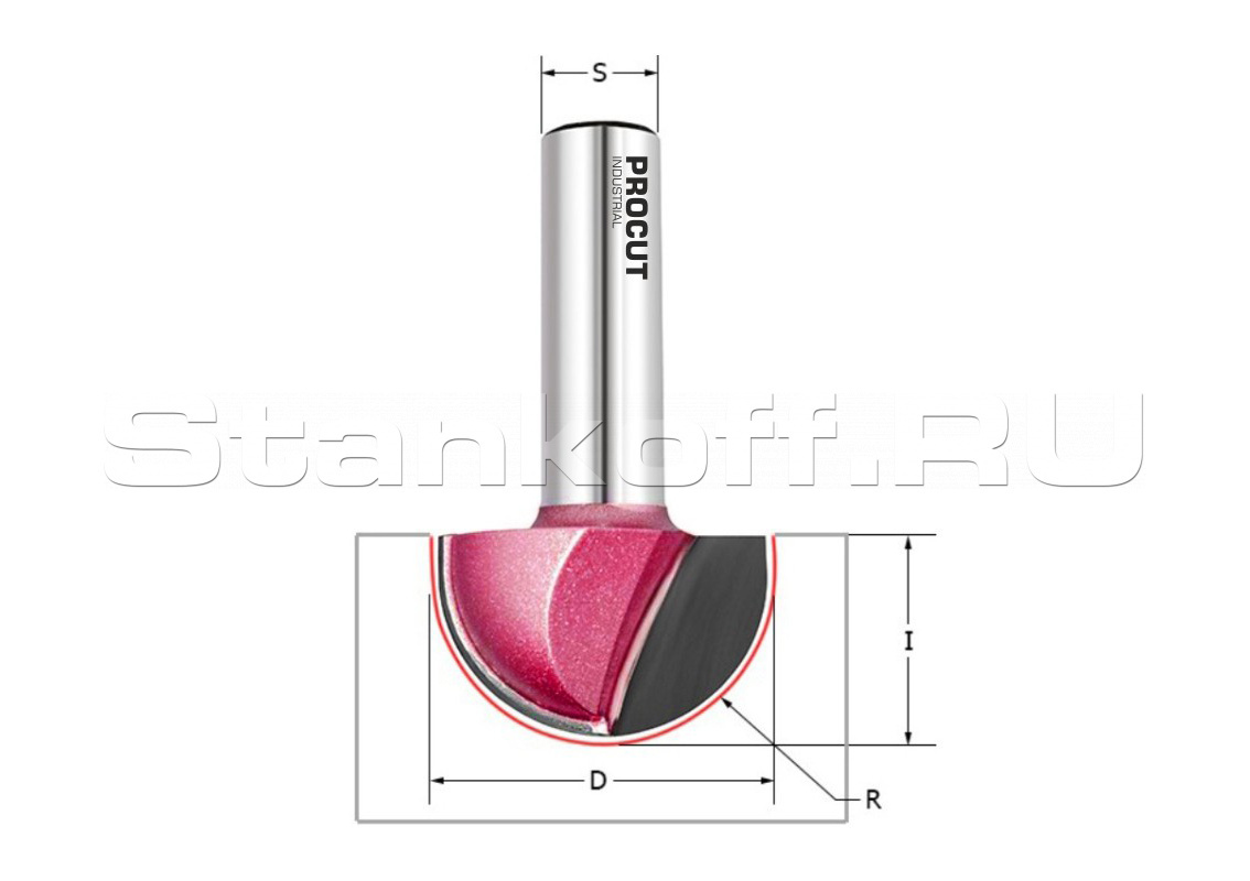 Фреза пазовая полукруг (чаша) Z=2 R=3 D=6x6x42 S=8 PROCUT 203802P