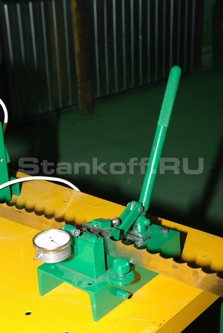 - Контроль точности величины развода зубьев сразу после нажатия на рычаг станка.