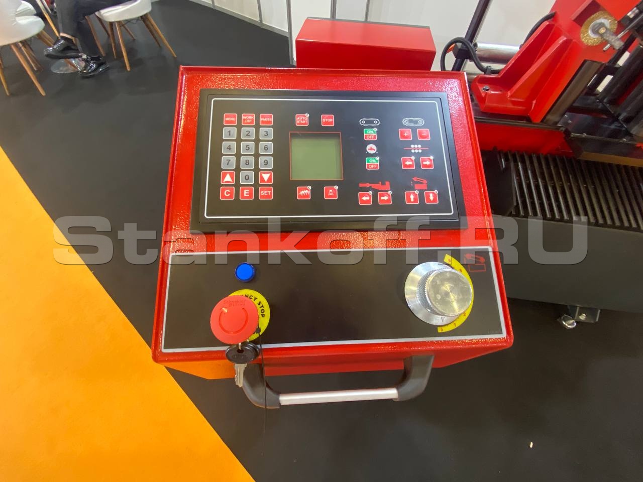 - Блок управления обеспечивает многократный ход подачи заготовки, благодаря чему можно распиливать заготовки любой длины;