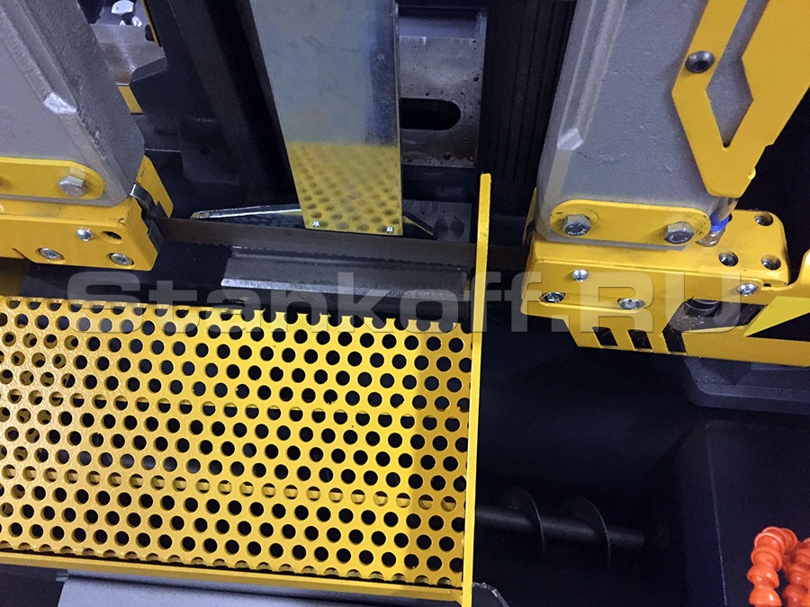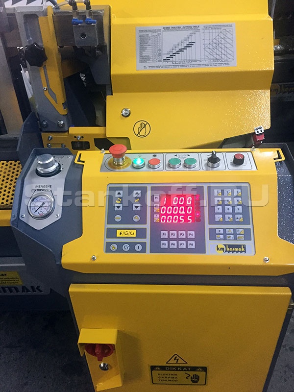 Станок оборудован PLC-контролером, который управляет всеми функциями автоматического станка:Опускание пильной рамы консоль при резании;