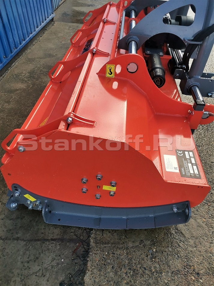 - 3-х точечная навеска с системой гидравлического смещения – дает возможность мульчирователю смещаться относительно направления движения, а также максимально приблизиться в приствольную зону для ее обработки;