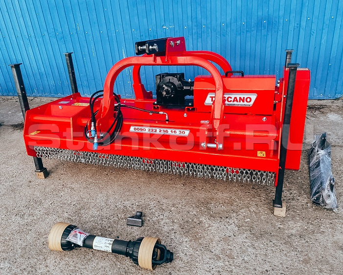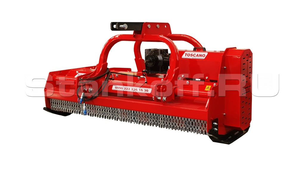 - Система гидравлического смещения – дает возможность мульчирователю смещаться относительно направления движения, а также максимально приблизиться в приствольную зону для ее обработки;