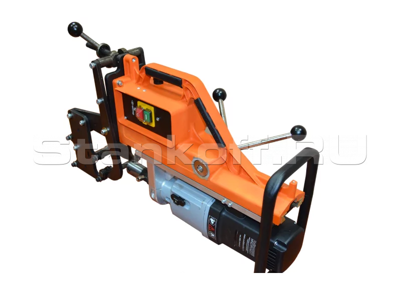 Для удобства переноски и установки на рельс, станок оборудован тремя рукоятками с резиновыми накладками.
