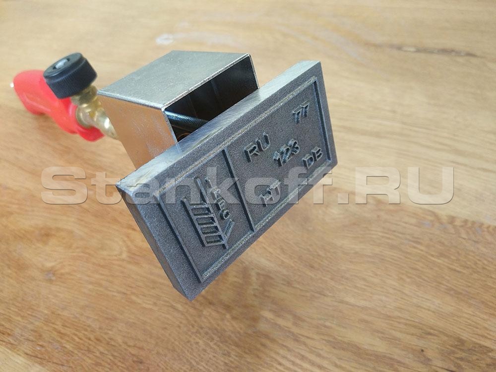 Клеймо изготавливается из стали методом электроэрозии по индивидуальному макету. Стоимость стального клейма выше аналогичного латунного поскольку требуется изготовить электрод, после чего приступать непосредственно к изготовлению клейма. Срок службы стального клейма, при соблюдении правил эксплуатации и хранения, значительно больше.