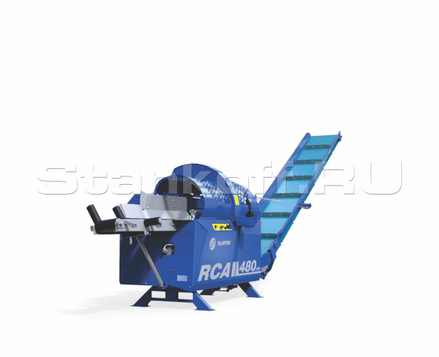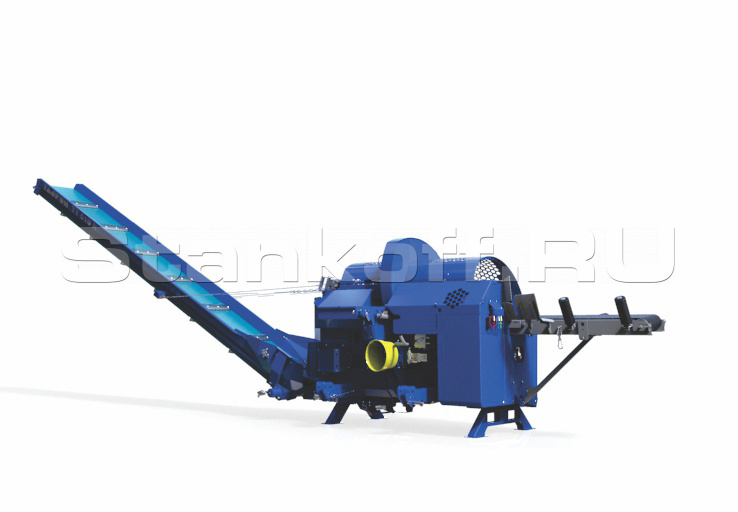 Транспортер для отвода дров имеет длину 5 метра и настраивается на необходимый угол наклона за счет лебедки. Также регулируется поворот влево/вправо +/- 15 Скорость движения транспортера регулируется бесступенчато. Натяжение ленты гидравлическое.
