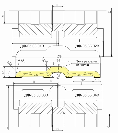 Комплект фрез для изготовления европлинтуса ДФ-05.38 В
