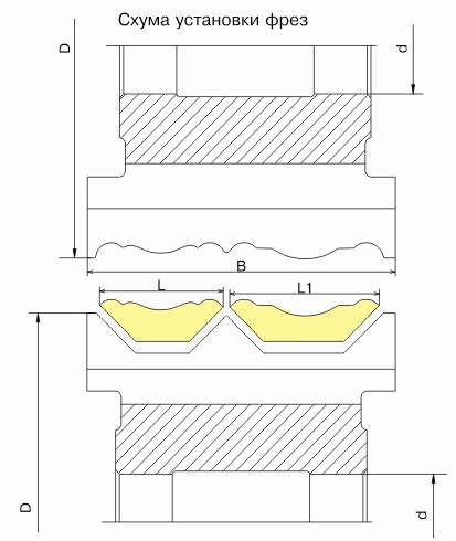 Комплектация: комплект состоит из двух фрез из инструментальной стали Х6ВФ или с напайными пластинами Р6М5.
