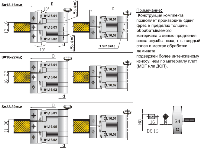 Комплект фрез для торцевой обработки ламинированных плит (01.16.XX.X.XXX.X.X)