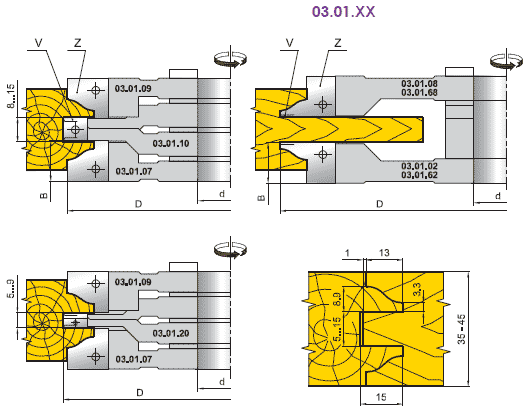 Комплект фрез Иберус для профилирования стояков и перемычек филенчатых дверных полотен (03.01.XX)