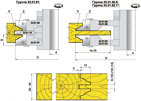 * - группа 33.01.92 - содержат фрезы 33.01.62 и 33.01.68 с аксиальными профильными ножами.