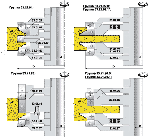 * - группа 33.21.92.1 - содержит фрезы 33.01.62 и 33.01.68 с аксиальными профильными ножами.