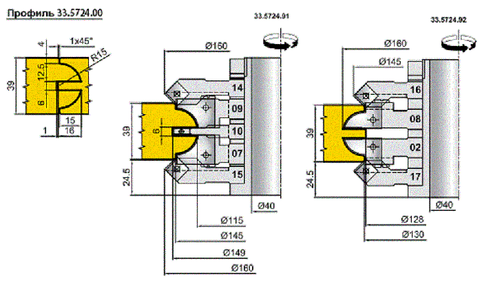 Комплект фрез для профилирования стояков и перемычек дверных полотен (33.5724.00)