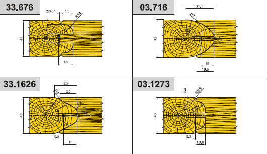 Комплект фрез для профилирования стояков и перемычек дверных полотен (03.ХХХ, 33.ХХХ)