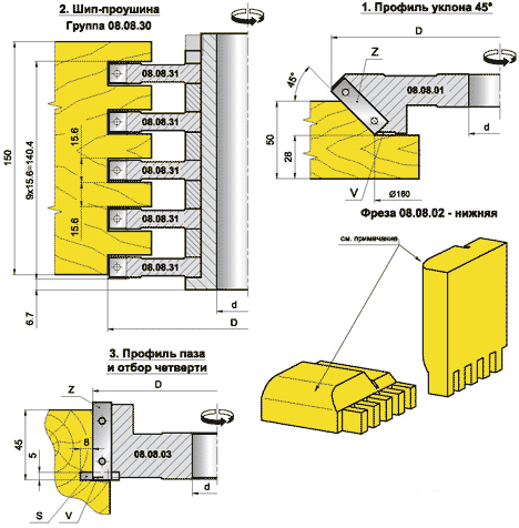 Универсальный комплект фрез для шипования дверной коробки Иберус (08.08.XX)