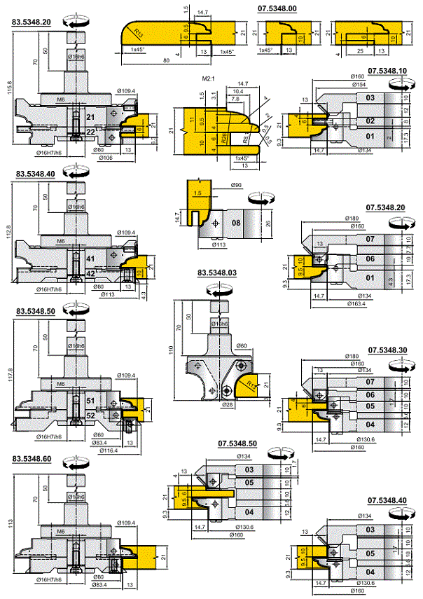 Пример фрез для изготовления мебельного фасада с использованием обрабатывающих центров (07.5348.00, 83.5348.XX)