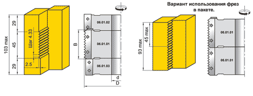 1. Конструкция фрез 06.01.ХХ позволяет набирать необходимый пакет фрез по ширине сращивания.