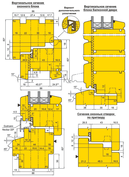 Брус 86x83; фурнитура 12/18-9