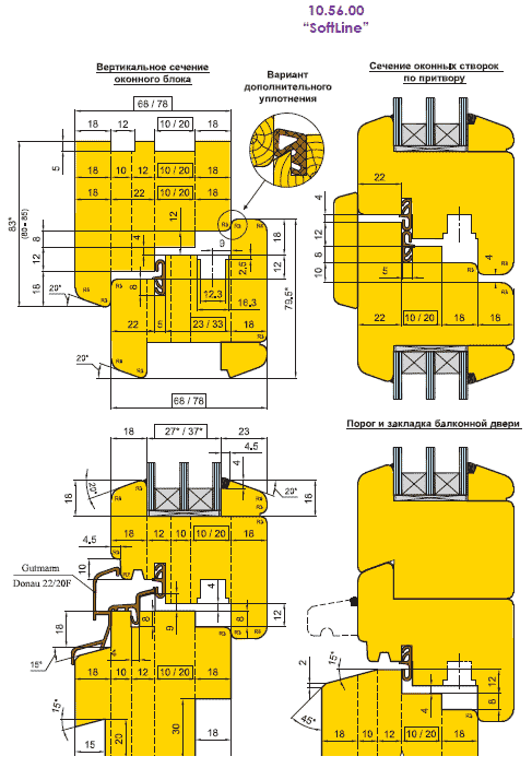 Универсальный комбинируемый комплект фрез для профилирования оконных блоков со стеклопакетом «SoftLine» (10.56.00)