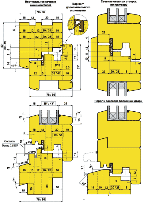 [] размеры в рамке - переменные, для исполнений из бруса 78мм и 86мм соответственно.
