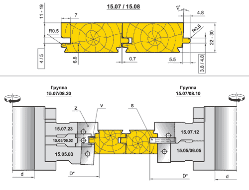 Комплект фрез для профилирования паркета (стандарт DIN280) на 4-х стороннем станке (15.07.00, 15.08.00)