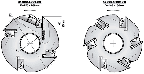 Для станков с уменьшенным диаметром строгания изготавливаются фрезы меньшими наружным диаметром (D)