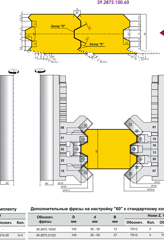 Комплекты фрез Иберус для профилирования строительного бруса на базе комплекта 39.2872.100 (39.2872.100.60, 39.2872.290)
