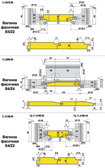 Комплекты фрез для профилирования обшивочной рейки (вагонки) малых диаметров (11.XXX.XX)