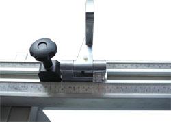 Боковая направляющая линейка обеспечивает точность распила. - Откидные упоры на боковой линейке позволяют точно контролировать размер заготовки. Удобные и хорошо читаемые показатели линейки.
