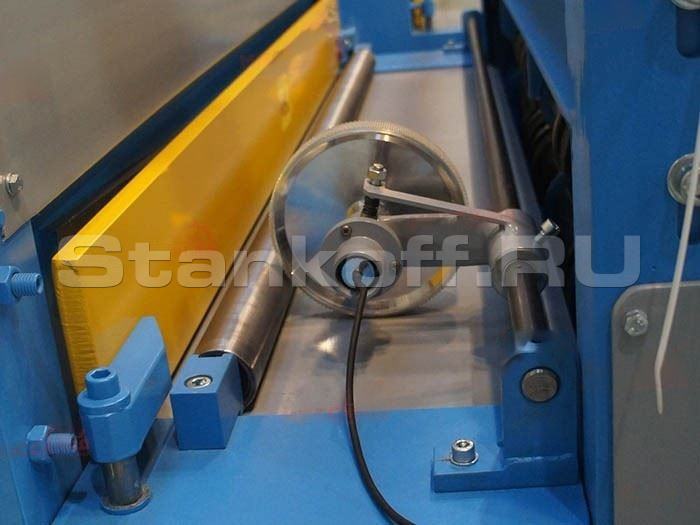 Наличие большого количества подающих роликов обеспечивает легкую подачу листового металла в зону резания.