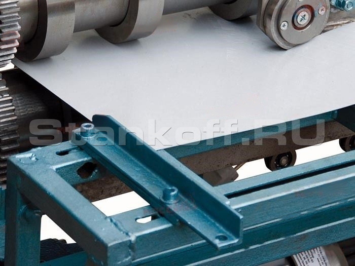 В зависимости от типа разрезаемого материала, его толщины и количества ножей, для получения качественной кромки (отсутствия заусенца) необходимо так же настраивать перехлест ножей посредствам регулировочного винта, осуществляющего подъем или опускание верхних подушек подшипниковых опор, одновременно изменяя межцентровое расстояние между дисковыми ножами.