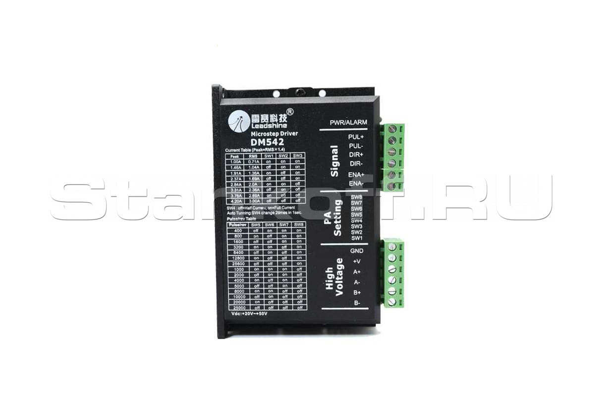 Драйвер Leadshine DM542 2-фазный. Драйвер совместим для управления любым 2-фазным шаговым двигателем типоразмера NEMA17 (фланец 42 мм), NEMA23 (фланец 57 мм), которым требуется сила тока до 4.2 А.
