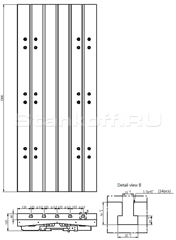 | T-пазы, Ширина x Дистанция x Кол-во, мм | 18x125x5 |